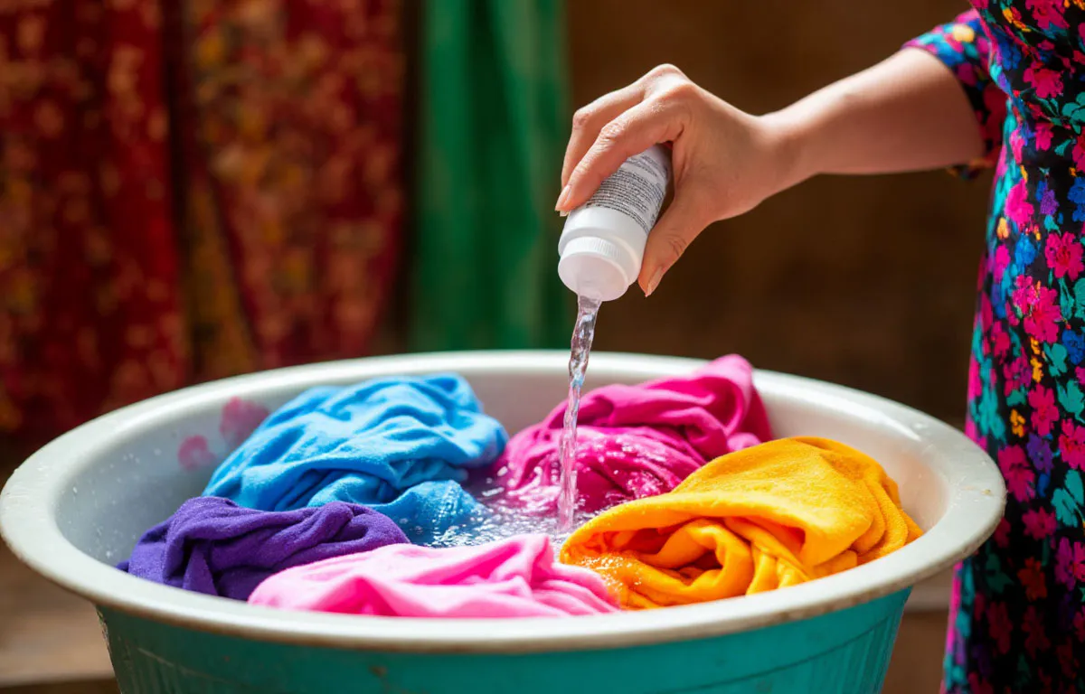Для реализации методики требуется приготовить несложный состав: в контейнер с умеренно нагретой водой внести 2 столовые ложки борной кислоты. В подготовленном растворе текстильные изделия необходимо выдержать примерно 120 минут, после чего извлечь, удалить излишки влаги и произвести стандартную машинную стирку.