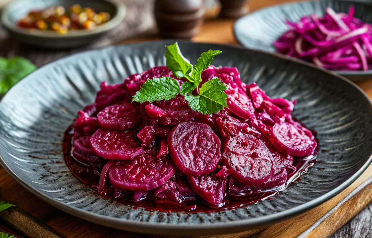 Свёкла, приготовленная по осетинской рецептуре, привлекает непритязательностью технологии приготовления и неповторимыми вкусовыми характеристиками, способными стать настоящим гастрономическим акцентом вашего застолья.