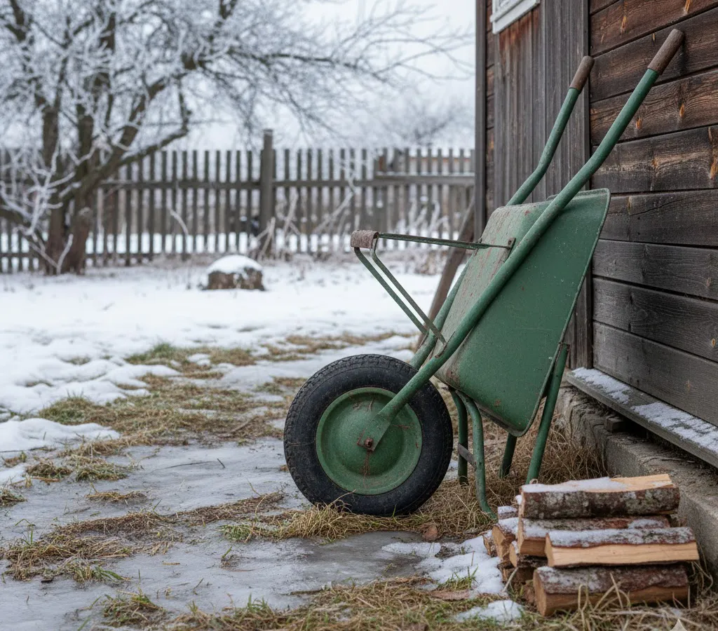 Как при помощи трёх деталей сделать удобное место для хранения садовой тележки: простой дачный лайфхак