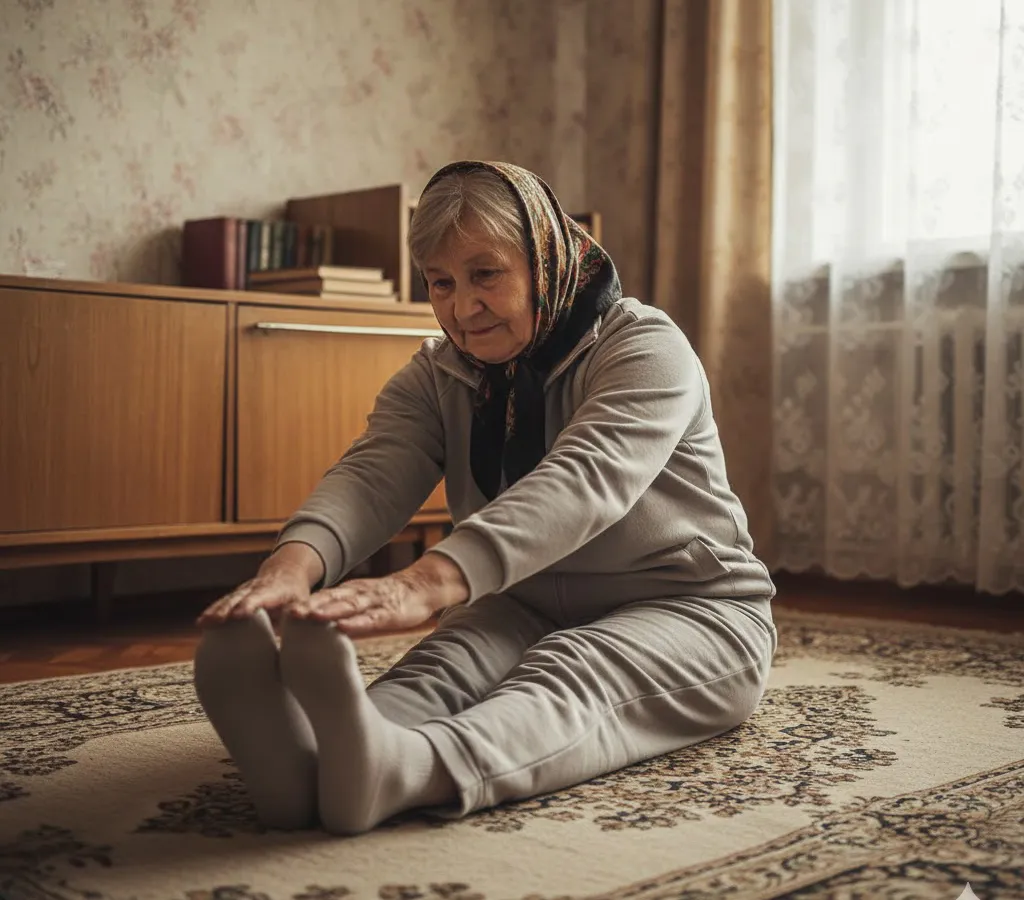 - После — 5 минут растяжки: мягко тяну спину, бёдра и заднюю поверхность ног.