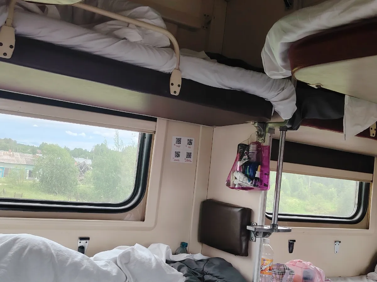 Тогда студентка забралась на свою верхнюю полку, села и свесила ноги (в чистых носках), начав покачивать ими в воздухе. Женщина с нижней полки тут же приподнялась и деликатно дернула ее за штанину, поинтересовавшись, не хочет ли она чаю, и с сожалением отметив, что девушка не сказала об этом раньше, предложив присесть.