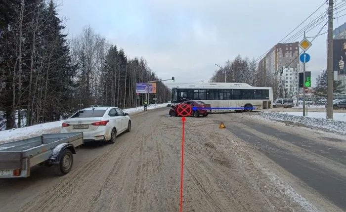 В Коми легковушка нарушила сигнал светофора и столкнулась с автобусом