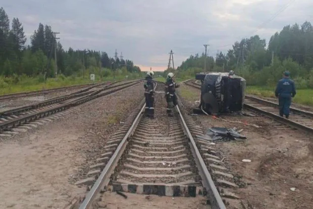 В Коми лихач на авто протаранил грузовой поезд на переезде