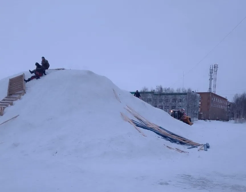 Новогодняя горка в Инте, появившаяся в снежном городке, прослужила совсем недолго. Уже 3 января в соцсетях появились фотографии, на которых видно, как сооружение демонтируют.