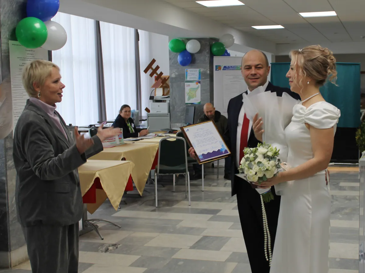 От имени Николая Такаева супругов поздравила заместитель главы администрации Ирина Виряльченкова. Она поблагодарила молодую пару за сознательность и пожелала им крепкого семейного счастья, взаимопонимания, благополучия и радости в новом совместном пути.