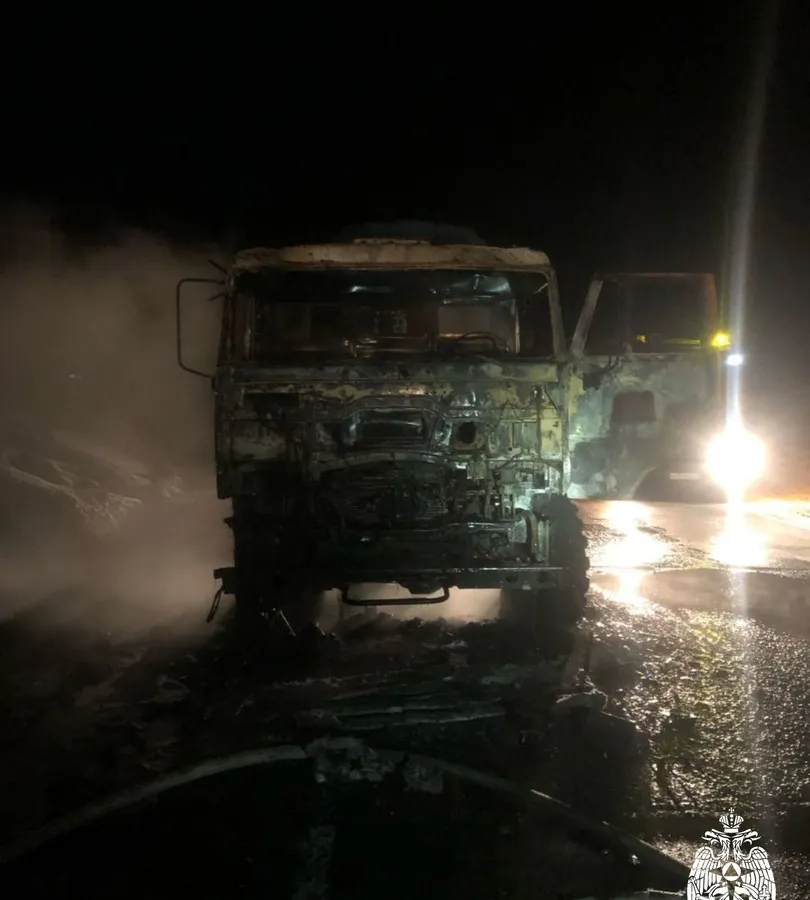 На дороге Усинск-Харьяга загорелся КамАЗ. Предварительной причиной инцидента назвали неисправность в системах автомобиля.