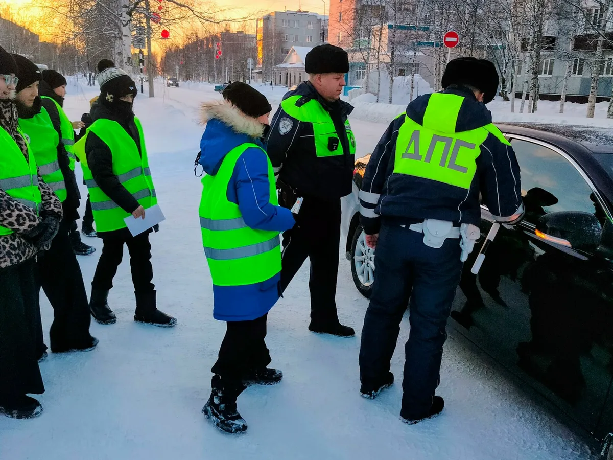 В Усинске школьники и инспекторы напомнили водителям о важности соблюдения ПДД