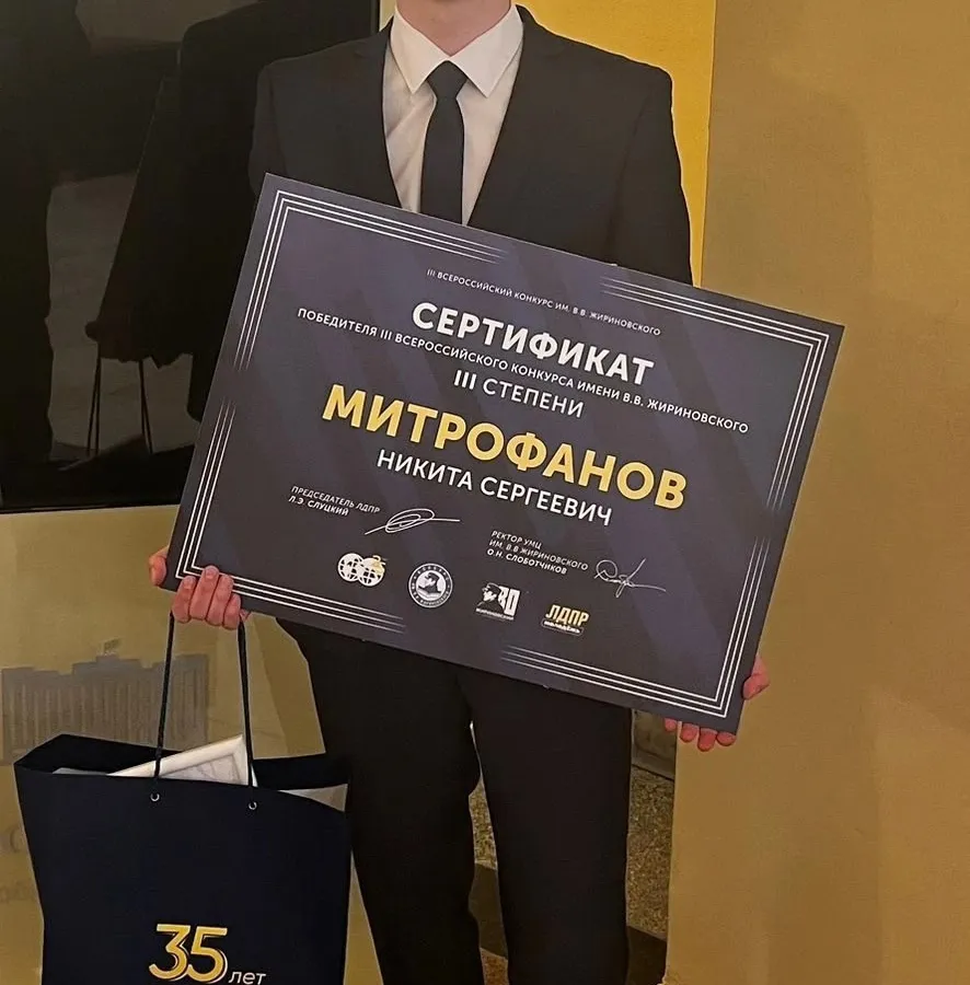 Яркое достижение украсило выпускной сезон в Усинске: ученик школы №5 Никита Митрофанов стал призёром III Всероссийского конкурса имени В.В. Жириновского. Торжественная церемония награждения прошла 25 июня в историческом Доме Союзов в Москве, где талантливому школьнику вручили сертификат на обучение со значительной скидкой в одном из самых перспективных столичных вузов — Университете мировых цивилизаций.