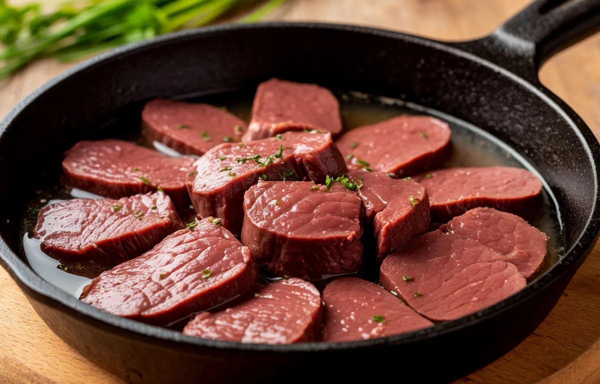 Я нарезаю печень небольшими удобными кусочками и заливаю их кипятком на пару минут. Это действует гораздо лучше, чем вымачивание в молоке: исчезает лишний запах, уходит горечь, а цвет после готовки становится более аппетитным.